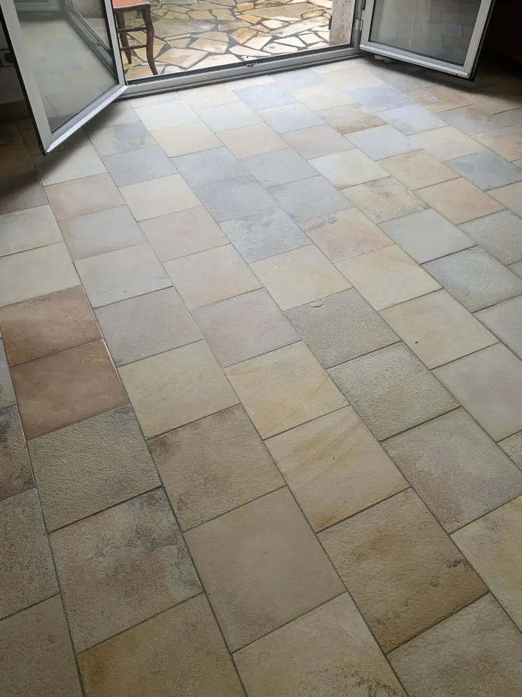 Une fois le traitement terminé, le sol est poli pour uniformiser la surface et raviver les teintes caractéristiques de la terre cuite. Le rendu final met en valeur l’élégance du matériau et facilite son entretien quotidien.